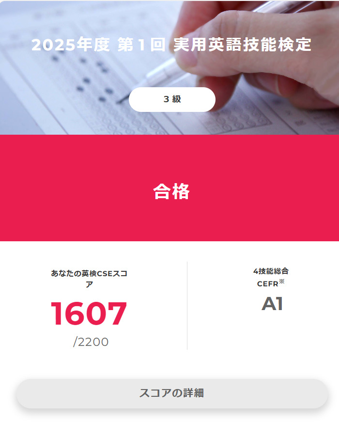 初めての英検ということもあり、緊張していましたが合格できて一安心でした。